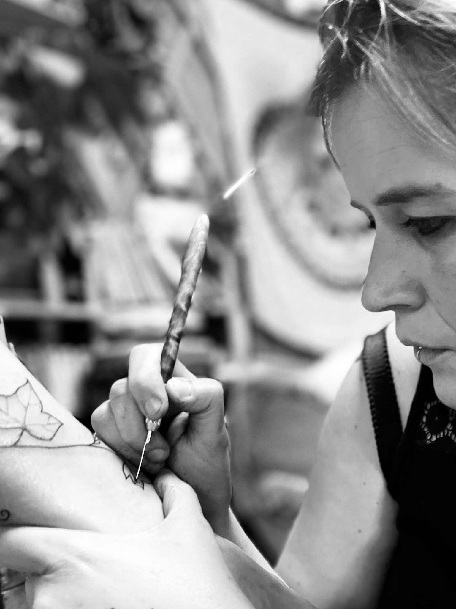 Artiste et tatoueuse handpoke avec Tattoo en toi, je tisse des symboles sur la peau comme on accompagne les grands passages de l’existence. Inspirée par les traditions amazigh et par les lignées de femmes méditerranéennes qui gravaient les signes comme des actes de mémoire et de protection, je conçois le tatouage comme un geste rituel, un seuil, un espace de transformation. Chaque tracé est une rencontre, posé dans un champ de bienveillance, de sororité et de profondeur.