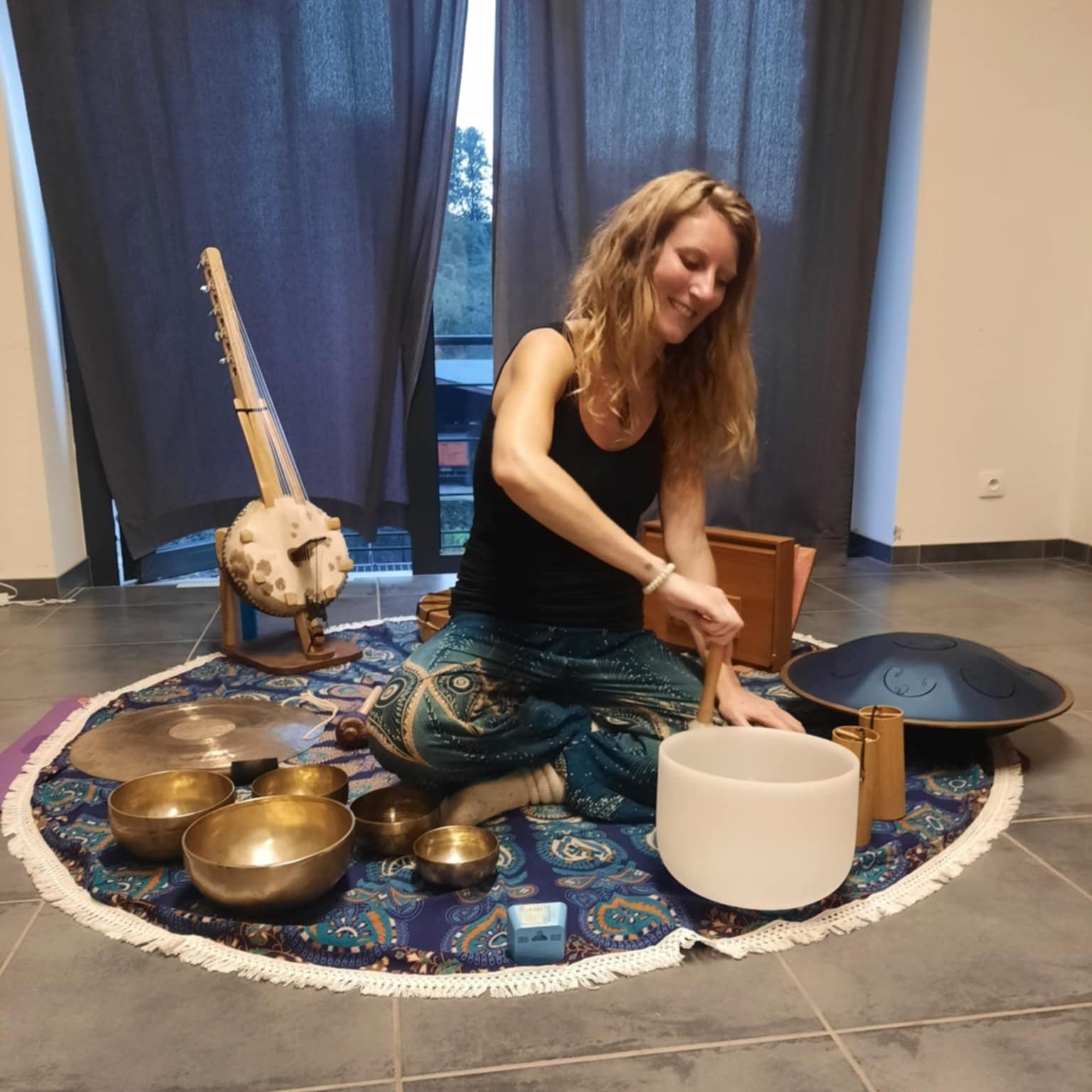 Le son agit là où les mots s’arrêtent. Les vibrations traversent le corps physique, émotionnel et subtil, sans passer par le mental. Il n’y a rien à faire ni à comprendre, juste à laisser être . Les sons entrent en résonance avec l’eau du corps, les éléments et le souffle, invitant à l’ajustement, au relâchement, au souvenir.