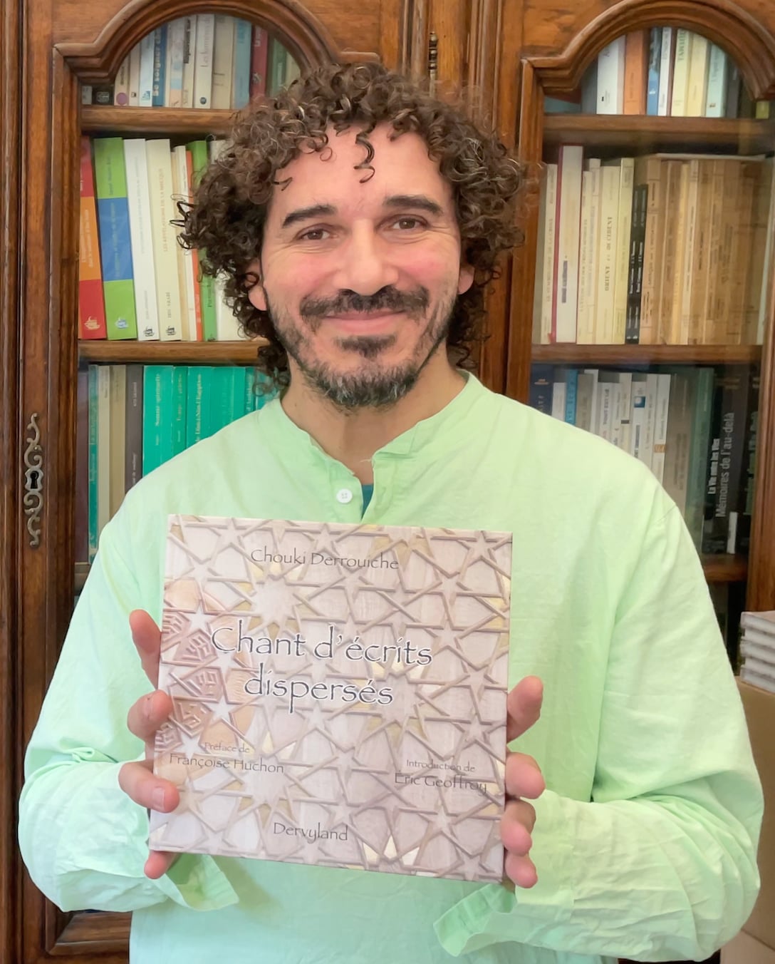 Né à Lille en 1970, Chouki Derrouiche est sculpteur sur bois. Son chemin artistique s’est profondément enraciné lors de trois années vécues à Tlemcen, en Algérie, où il est initié aux techniques ancestrales de la sculpture arabo-andalouse. Il obtient son CAP de sculpteur en 1987. La découverte des écrits de Titus Burckhardt marque un tournant décisif : à travers eux, Chouki met des mots et du sens sur ce qu’il pressentait déjà dans sa pratique – l’art comme voie du Sacré. Les enseignements de penseurs tels que René Guénon, Frithjof Schuon, Martin Lings ou Ananda Coomaraswamy viennent nourrir cette quête intérieure, tout comme son engagement dans le dialogue interreligieux.
