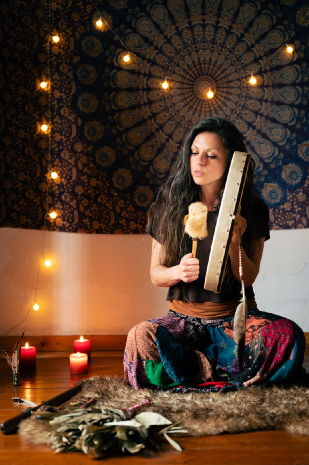 Je suis Maïté, Grande Petite Mama de mon nom de vocation. Je pratique divers soins chamaniques depuis 2017. Je suis passionnée du vivant, de la vie, de la transe, de la guérison, et de tant de choses qui me font vibrer. Mon fil rouge, c’est l’Amour. J’œuvre pour la lumière avec une force de guerrière et la douceur d’une mère. Je brasse les ombres pour les transmuter. Mes pratiques sont très larges : soins et rituels chamaniques, travail avec les sons et le souffle, huttes de sudation, massages en conscience thérapeutiques, accompagnements en tant que Doula,… j’accompagne les enfants, les adultes, les défunts et les animaux.