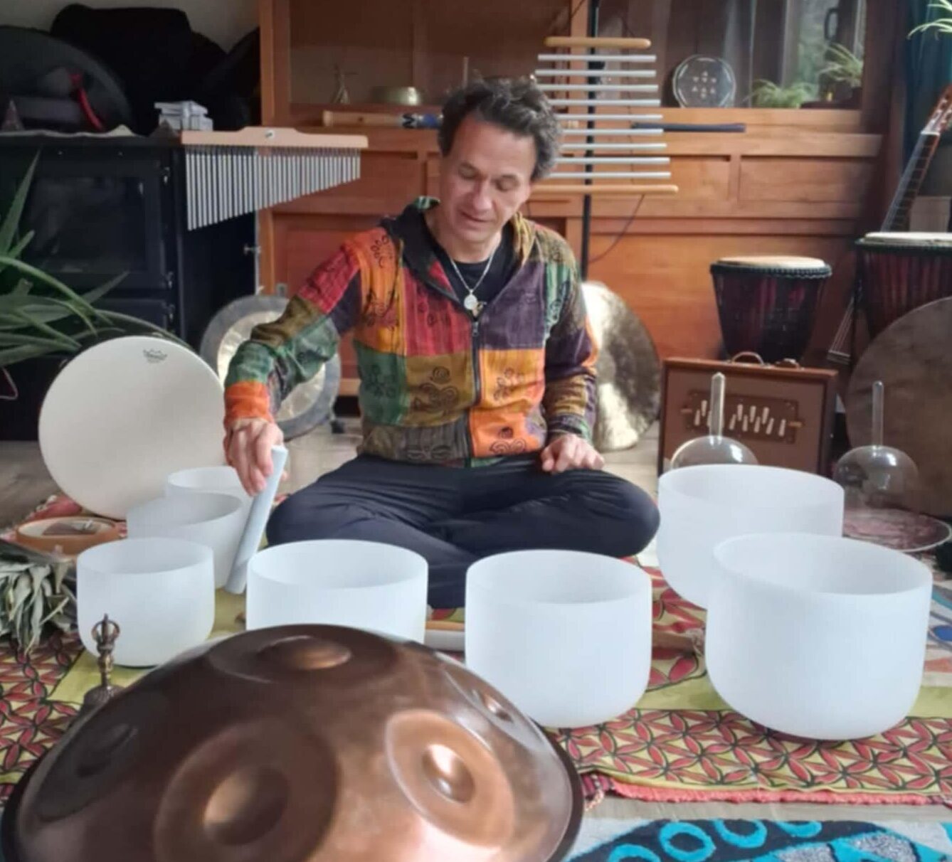 Dans un monde qui pousse à faire et produire, je propose un espace de ralentissement, de présence et de simplicité. Sans masque, sans artifice, dans l’authenticité et le non-jugement.Mon atelier est une invitation à se reconnecter à soi et au monde, par le son, le souffle, les éléments et l’intention.Pour harmoniser, s’ancrer, retrouver la justesse du cœur… et sentir que nous sommes un fil dans la grande symphonie du vivant.